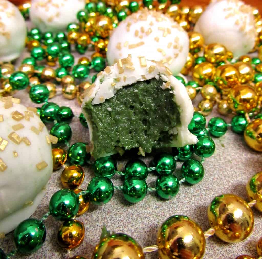 I didn’t get a chance to make it photo-ready as she was breathing down my neck waiting to eat it. Yet somehow when I left to return home to Memphis, TN the next day she sent me off with almost half of the cake! Pondering, pondering, what to do with too much cake in my kitchen. Who am I kidding I didn’t ponder at all and immediately decided to make cake balls out of it, perfect for St. Paddy’s Day!