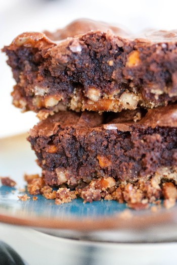 I’m brownie-craver central over here and your treat look amazing! The pretzel crust is a nice touch – I’d go brownie crazy all up in that casserole dish. YUM!