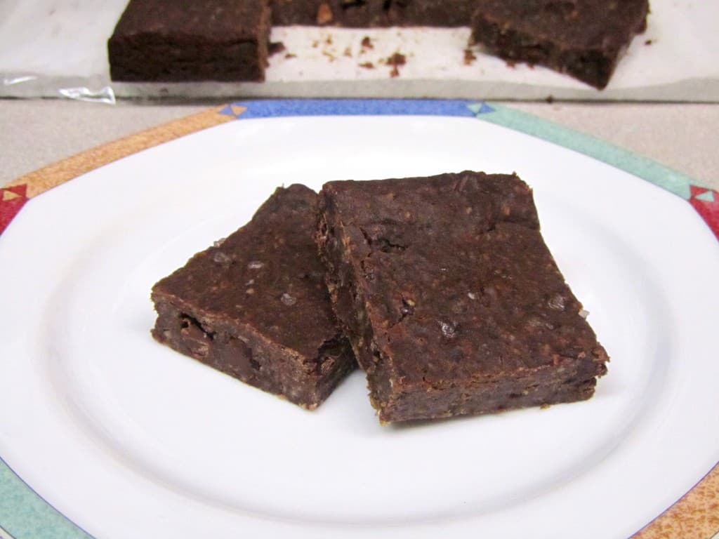 And the verdict? Not only were they easy to prepare (all in the food processor), they were surprisingly good! Knowing black beans were in the brownies I could kind of taste their presence, but no one else I shared them with knew. In fact it paired quite well with the chocolate and made for a very chewy brownie, which is my favorite kind of brownie. I definitely plan on making these again with walnuts mixed in, yum!
