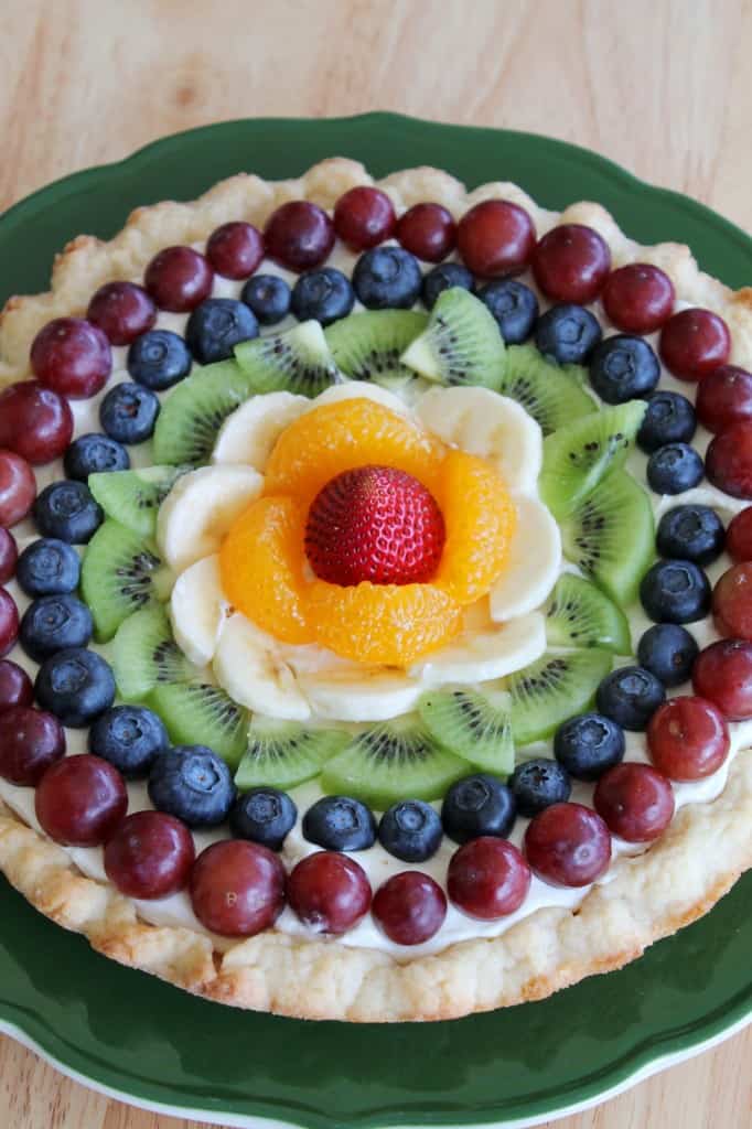 […] Rainbow Fruit Pizza Tart by The Spiffy Cookie – This Rainbow Fruit Pizza Tart will create spontaneous smiles with a sugar cookie crust, vanilla Greek-cream cheese filling and a rainbow of fruit. […]