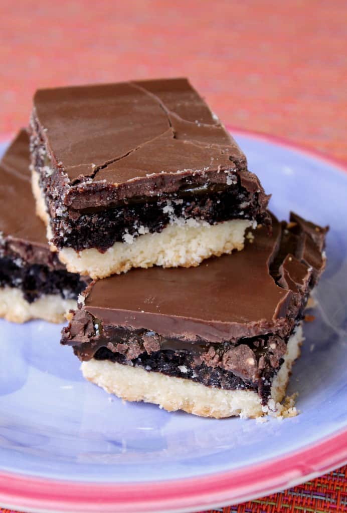 AÂ brownie and a Twix candy bar fell in love and and gave birth to these aptly names Twix Brownies with a shortbread crust, fudgy brownie, caramel topping and chocolate coating.